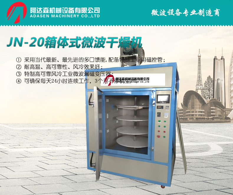 JN-20箱體式微波干燥機是一種常用的食品微波干燥設(shè)備,適用于各種食品的干燥和殺菌。下面是JN-20箱體式微波干燥機的介紹: