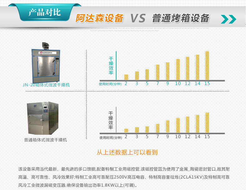設(shè)備結(jié)構(gòu):JN-20箱體式微波干燥機由微波發(fā)生器、微波傳輸系統(tǒng)、干燥室(箱體)和控制系統(tǒng)組成。